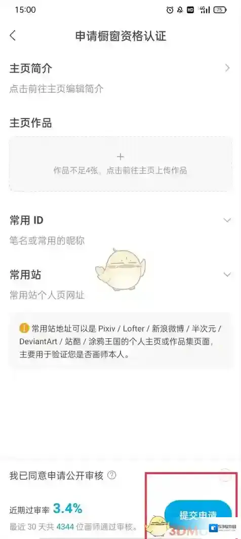 5、你需要编辑自己的主页简介,添加主页作品、常用ID、常用站,最后提交申请就可以了。