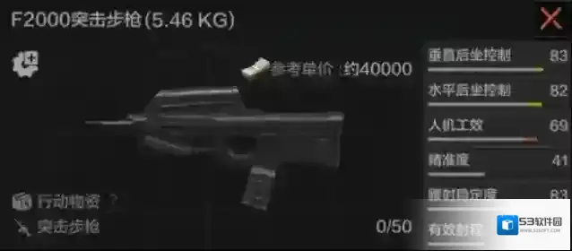 同为无托式设计的F2000拥有DT MDR无法比拟的傲人基础属性,原厂F2000就有80以上的水平和垂直后坐控制,及83的超高腰射稳定度,射击手感十分舒适。850发/分钟的射速与H416齐平,默认的50发弹匣也足以满足续航需求。不过F2000的可改装部件同样很少,只能加装消音器,更换瞄具。为枪口加装消音器可以提升隐蔽性,选配3倍/4倍全息瞄准镜可以兼顾中近距离的战斗。之前版本中,F2000只能使用默认的50发弹匣,导致弹匣价格偏贵,大家不太爱用。目前版本中F2000已可适配30和40发的AR弹匣,让使用这把武器的使用成本大幅下降。目前它确实是很适合半装先锋的选择。