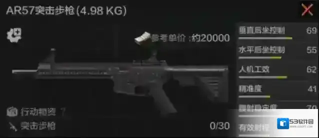 AR57是AR系列步枪中的一个“异类”,因为其使用的不是常规的5.56×45毫米口径的子弹,而是P90冲锋枪使用的5.7×28口径子弹,其它配件则可与AR系列武器通用。它的射速(900)和基础属性都还不错,只不过5.7口径子弹最高只有4级穿深,多少限制了AR57的上限。因此老皮只推荐对这把武器做半改,满改的话就不如选择其它AR系武器了。半改时优先选择加装前握把,再拆掉机瞄换成任意单倍瞄具,为枪口加装消音,最后加装一个镭指提升腰射即可。