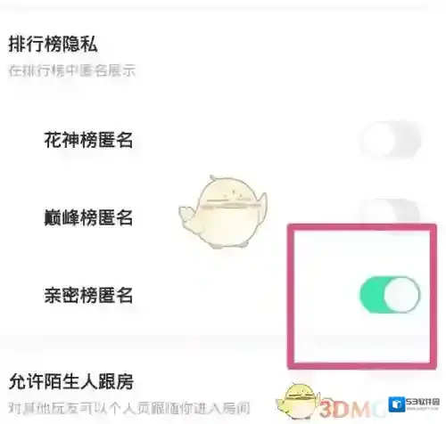 4、最后打开亲密榜匿名后的绿色开关即可。