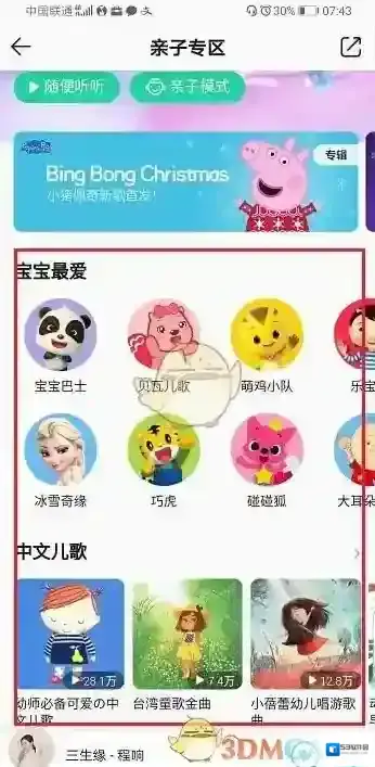 7、最后点击更多即可进入亲子专区,这里有更多的歌曲可以选择,我们可以根据需要进行选择。