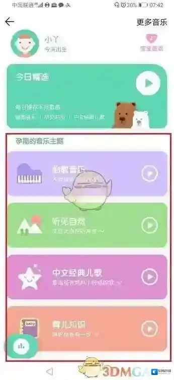 6、随后进去亲子模式之后可以看到各种适合宝宝听的歌曲,接着再点击可以进行播放歌曲和收藏歌曲。