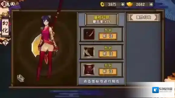 提升战斗力的主要方式,分为人物、装备、驭灵三大部分。