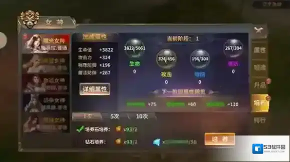 作用:提升女神基础属性,从而大幅提升女神战斗力