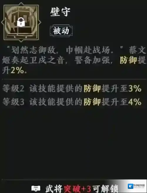 蔡文姬突破+3时解锁,该天赋为蔡文姬提供一定的防御。进一步增强了蔡文姬的存活能力。