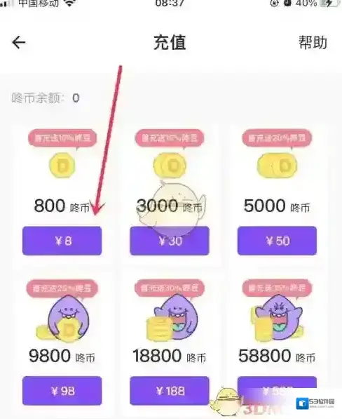 4、最后在页面,点击充值的数额,根据系统提示选择支付方式,进行支付即可获得咚币。
