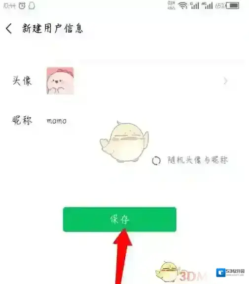 7、在打开的新建用户信息界面,点击头像昵称,都可以更换别的,点击保存。如图所示