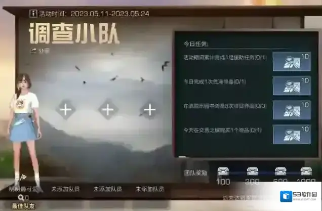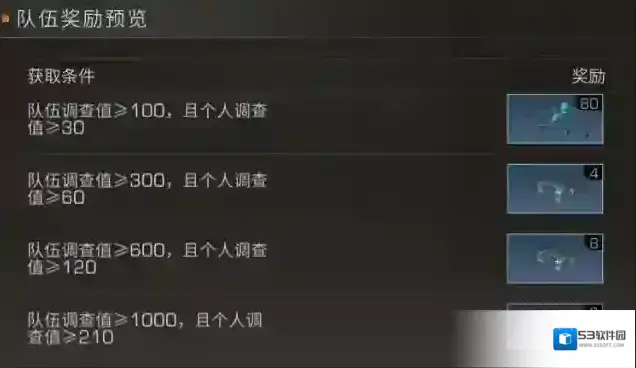 活动期间玩家可与另外3名玩家组成调查小队完成对应任务可以获得调查值任务将每天进行刷新
