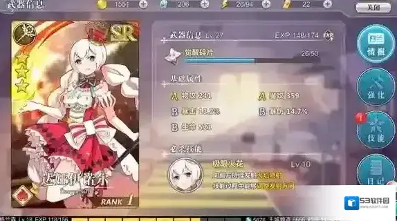 点击左下角你老婆的头像,就可以更换武器了,更换武器的时候记得注意位置加成,第一位物理第二位魔法第三位生存,不要乱放武器哦