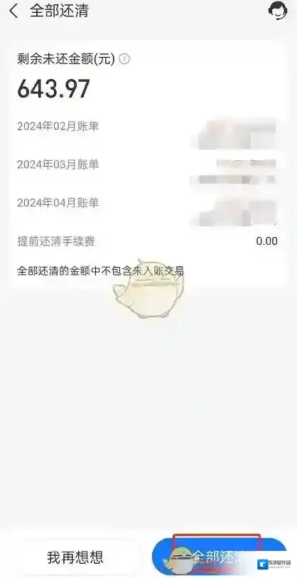 5、进入“全部还清”页面,点击右下角的全部还清按钮,按提示完成支付即可。