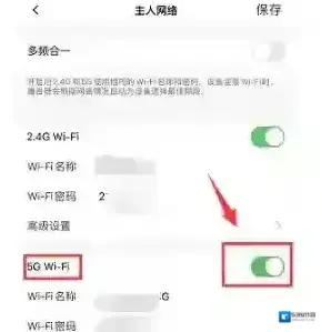 4、将5G频段后面的开关关闭并保存设置