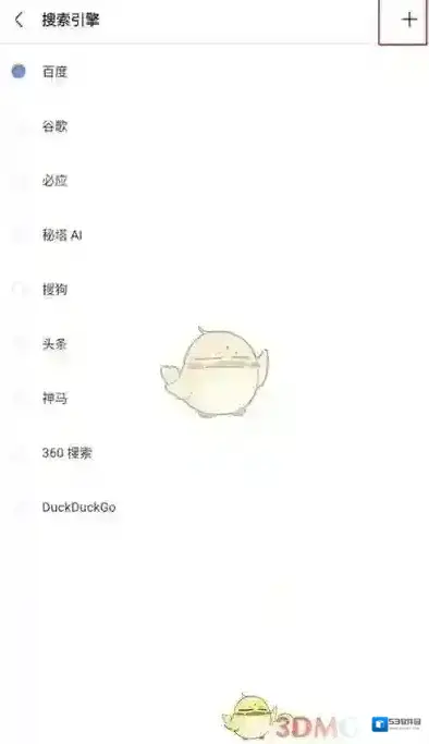 6、进入搜索引擎界面后,点击界面右上角的+选项;