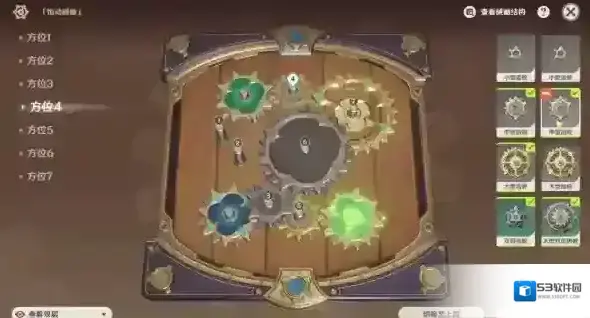 二号位放置小型齿轮,三号位放置中型齿轮激活左侧,随后六号位上层放置大型齿轮,七号位上层放置中型齿轮即可