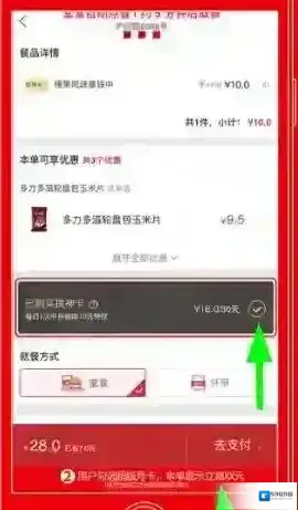 1、用户点餐后在结算页看到系统推荐的超级月卡
