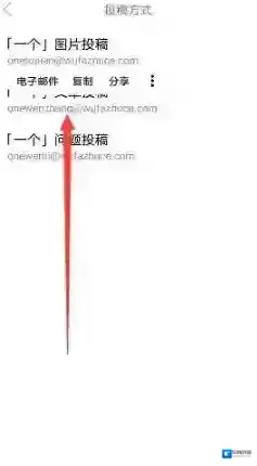 5、长按文字下方邮箱,就会显示全选,复制,分享。点击复制即可。