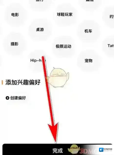 4、选择目标兴趣后,点击完成即可添加个人兴趣偏好。