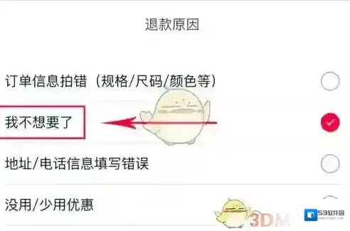6、在退款原因中,请选择“我不想要了”或其他原因。