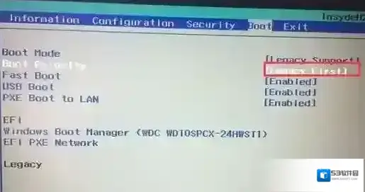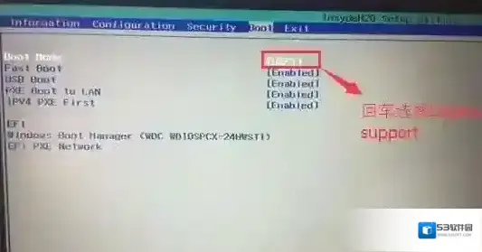 4、切换到Boot,把Boot Mode从UEFI改成Legacy Support,改传统引导,如下图所示;