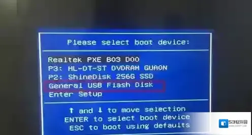 4、保存设置后自动重启进入LOGO画面时,一直按重启按F12/F7快捷键,在启动菜单中选择USB启动,如下图所示;