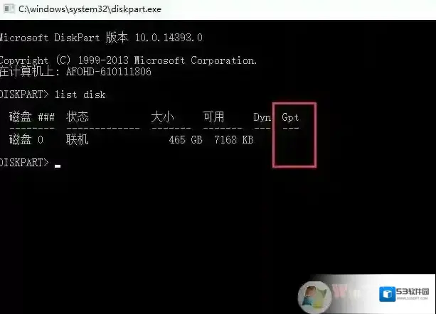 4、之后会显示下图的信息,Gpt下方如果有星号就表示是uefi启动,Gpt下方如果没有星号则是传统启动模式。