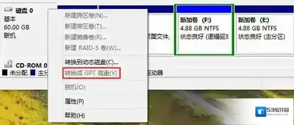 如果你知晓GPT与UEFI启动之间的关系,那么你可能知道,Windows想要从GPT硬盘引导,就必须以UEFI方式启动(反之则不成立)。在磁盘管理中看一下硬盘类型,如果是GPT,那么电脑肯定就是UEFI启动了。打开磁盘管理,在主硬盘上右键单击,如果出现“转换成GPT磁盘”,那说明硬盘为MBR类型;如果出现“转换成MBR磁盘”则说明硬盘为GPT类型(因为是主硬盘,这一项是灰色不可用状态)。