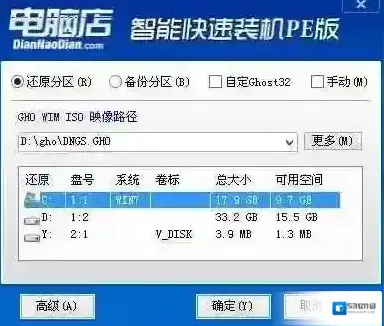 四、技嘉Z370主板电脑装Win7一键安装win7:1、分区完成后运行桌面的”一键装机还原”等工具,然后选择win7系统镜像文件(事先把下载的Win7 ISO镜像放到U盘中。),以c盘为系统盘,把win7系统安装在c盘中,点击确定;