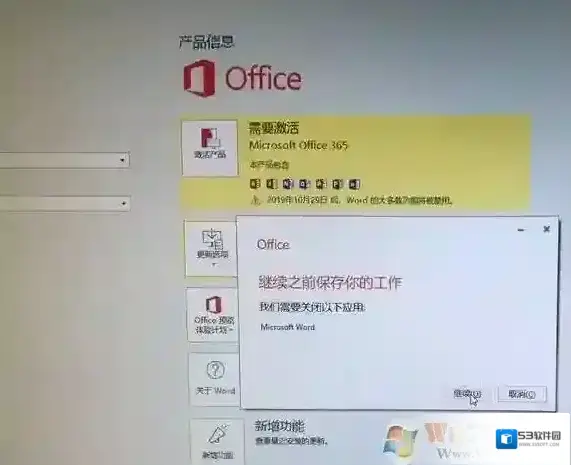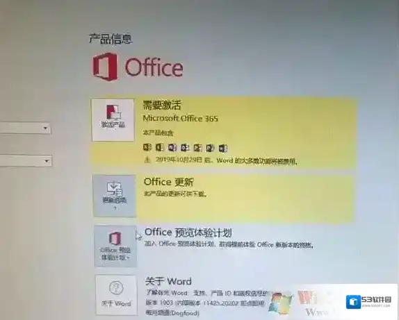 8)如果查看此处显示Office365,请不要担心,只需点击Office更新,升级到最新版本的Office即可完成激活。