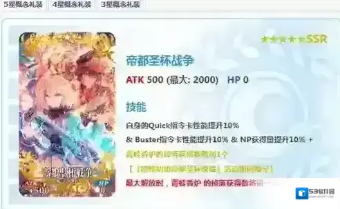 通过装备限时概念礼装’5(SSR) 帝都圣杯战争”4(SR) 坂本侦探事务所”3(R)蠢蠢欲动的暗剑’可提升活动道具的掉落获得数量。
