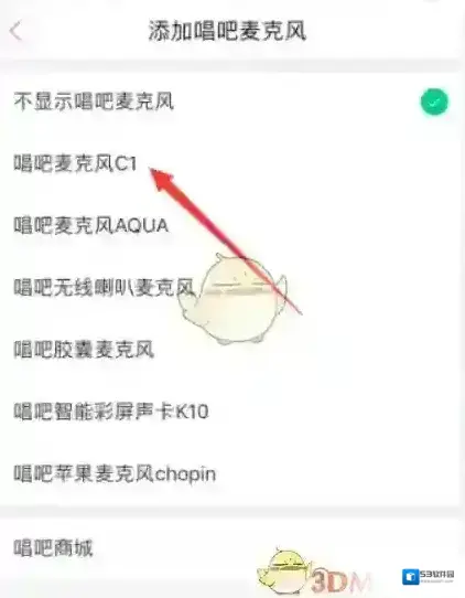 4、选择一个喜欢的麦克风,以唱吧麦克风C1为例,点击。