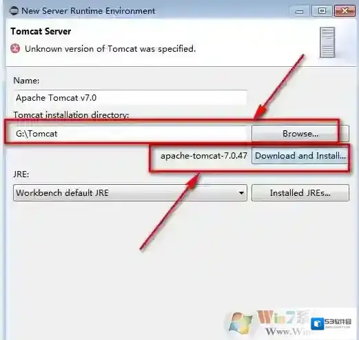 8、此时我们选择一个文件夹来安装Tomcat,接下来点击download and install(下载并安装)Tomcat。