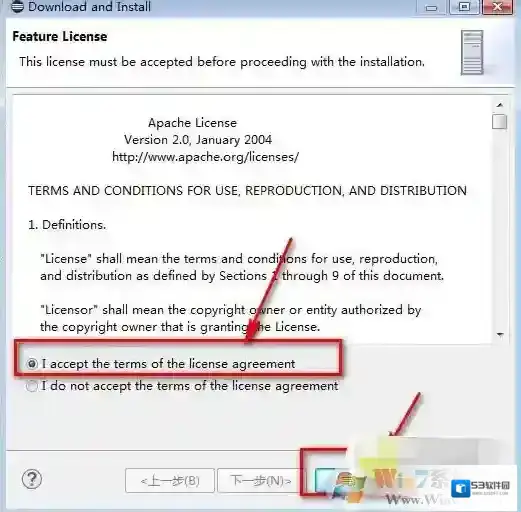 9、如图,点击之后,勾选“I accept the terms……”,然后点击“完成”按钮。