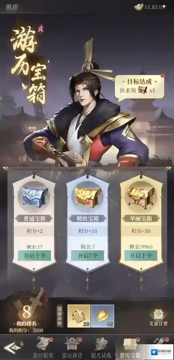 3、少侠累计获得游历积分达到指定数量时,可以领取“宝箱积分成就奖励”。