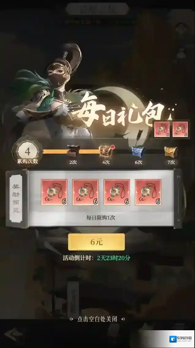 1、游历天下活动期间,少侠可以每天购买1次“每日礼包”,并根据累计购买天数领取对应的成就宝箱奖励。