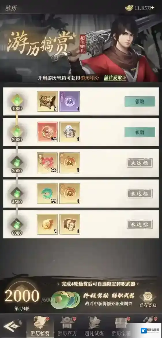 2、游历犒赏一共4轮,每1轮奖励领取完后再进行下1轮奖励领取。
