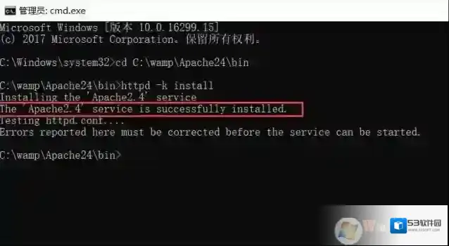 点击启动即可启动Apache服务,也可以使用命令启动该服务
