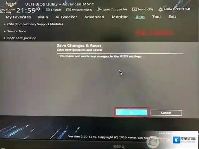 10、系统迁移成功之后,最后在主板BIOS中将固态硬盘设置第一启动项,以免再次会进入机械硬盘的操作系统中。由于每个主板或者笔记本的bios有所不同,我们这里以华硕主板为例,我们将电脑刚开机之后,反复按下“DEL”键进入主板BIOS,按下F7键进行高级选项(Advanced Mode)。