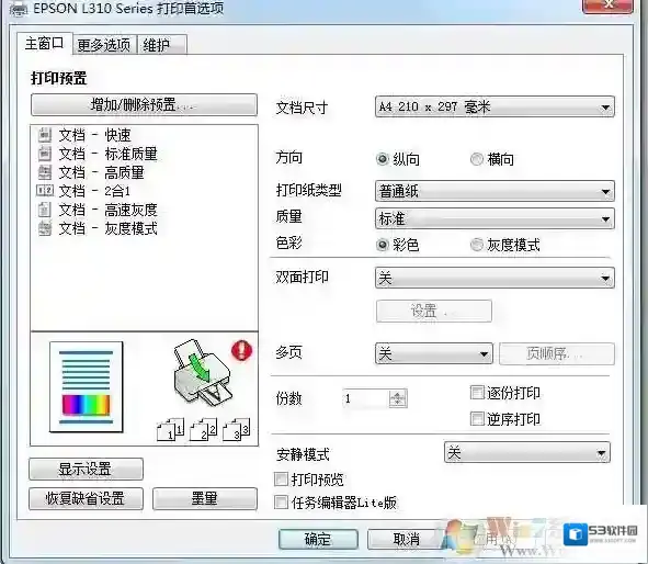 4、右键打印机首选项,可以进行打印机打印尺寸、纸张、颜色、方向、打印质量等等设置;