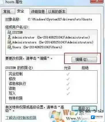 7、点击编辑,选中当前登录帐户,将权限设置为全部允许;