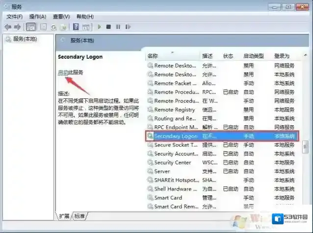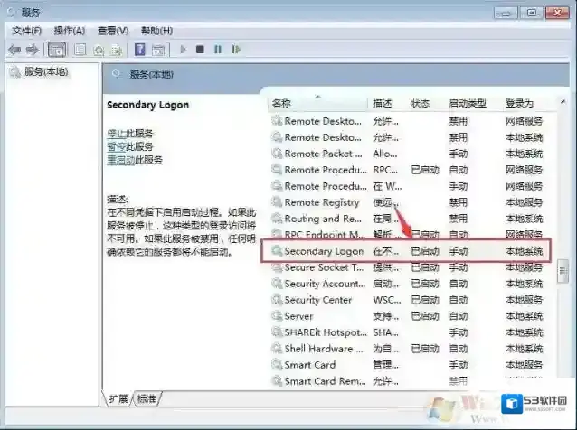 (3)接着你会看到Secondary Logon服务已经启动了。