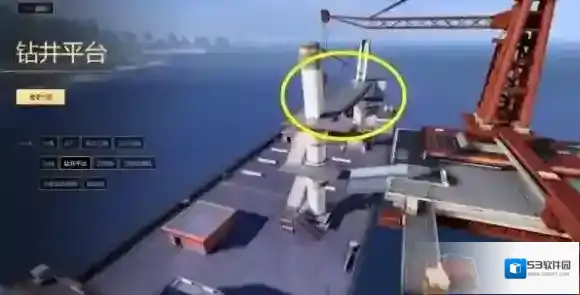 大海辽阔一望无际,钻台霸气巍然屹立。钻井平台是全图唯一的远离陆地的地域,钻井平台相当大,能够满足两到三人的需求。平台内部结构多层,听声辩位真的很难。上图黄圈内位置为钻台最高点,可观察船上的一切敌方动向,此处拥有物资,适合落脚,狙击蹲点也很方便。此外想要离开钻台只有载具和游泳。想到什么没有?没错,在钻台中央位置的水域有刷新的载具,蹲载具等人也是很好的选择。