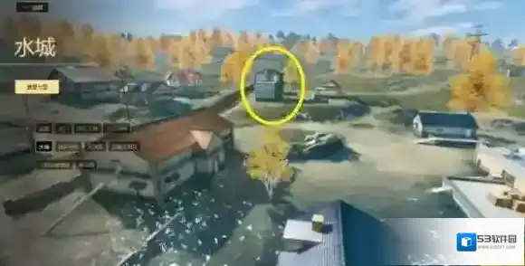 城中有湖水波清秀,湖中有城风光旖旎。水城也是一处官方地图没有标注的地域,为图一中红色圈内的区域。水城是全图中唯一一处水陆交融的小城,是考验玩家战略部署灵活多变的最强地域。在这里会刷新水陆两用步枪(水陆两用武器刷新点为靠水的地域,普通地域不会刷新),需要玩家依据当前形势选择武器。上图黄圈内房屋可观察四面敌方动向,具有高点优势,且周围地势凹凸,方便撤离。