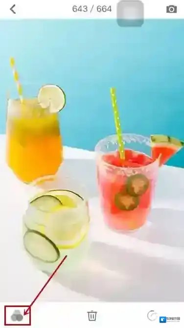 1、打开潮自拍app,选择一张自己喜欢的照片之后点击左下角的“三圆重叠”按钮