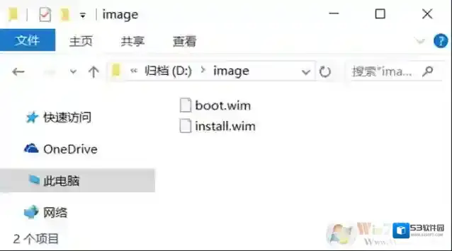 6、复制光盘镜像 sources 文件夹中的 boot.wim 和 install.wim 到 d:image