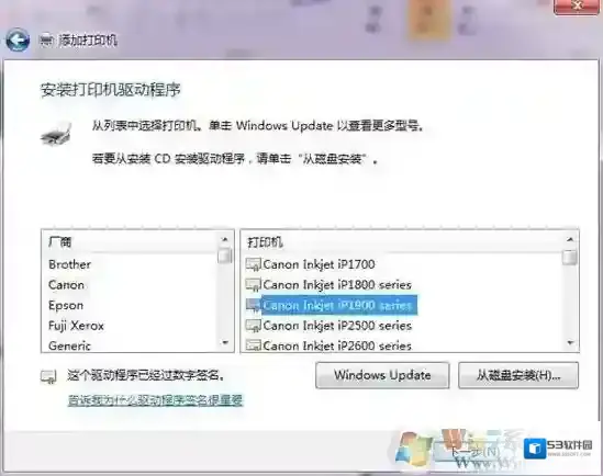 7.接下来系统会提示您安装打印机的驱动,如果您的打印机型号在系统集成的驱动列表中,您可以直接选择相应型号并点击下一步进行安装,如果找不到您的打印机型号,请选择从磁盘安装,然后通过光盘或者其他存储设备来安装打印机的驱动。完成后继续点击下一步。