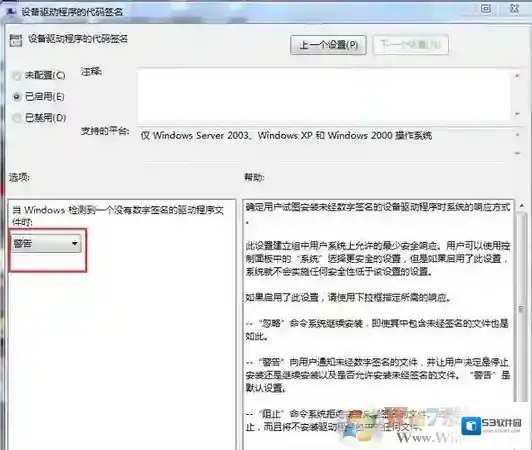 win7系统禁用安装驱动程序需要签名的方法7、驱动程序安装完成后,建议把刚才设置为忽略的项再设置为警告(默认设置),以增强系统的安全性。