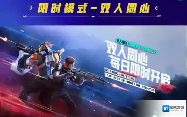 12月15日-18日,双人同心模式限时开启,体验双人同心模式,休闲上分,完成任务领皮肤碎片、能量币等好礼!