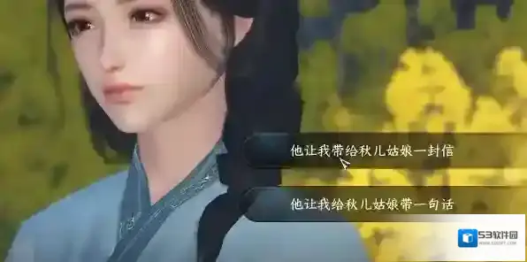 2、然后玩家前往河边找到绿衫女子进行对话,对话中选择他让我带给秋儿姑娘一封信-她芳心另许了。