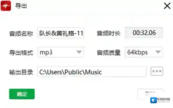 之后我们在导出框中,可以修改导出音频的名称、格式、输出目录,最后点确定,完成闪电音频剪辑软件音频调速的最后一步。
