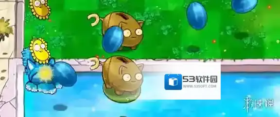 4、在豌豆睡莲上放一个坚果存钱罐,并在其后方放个冰瓜香蒲。