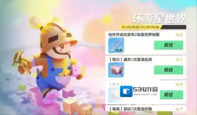 1月19日起,完成闯关任务,就能领取随机宝箱,还能拿“环游星世界”等限时称号领称号,赚经验,加速拿小满时装!